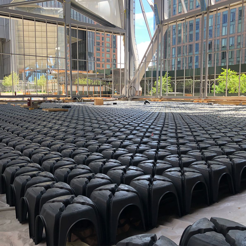 Cupolex floors are built using recycled plastic domes that form a void space below the concrete slab. This system allows for natural air circulation, which improves thermal regulation, reduces ground moisture, and enhances indoor air quality. The resulting floor is strong, lightweight, and thermally efficient — ideal for both residential and industrial applications.